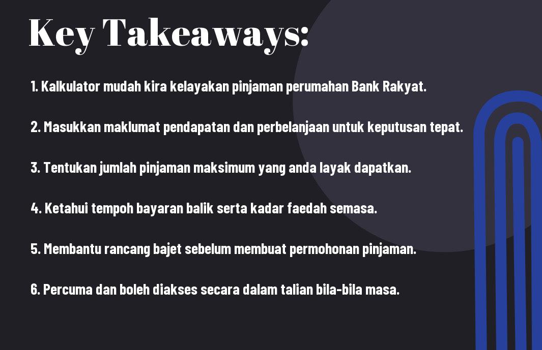 Menggunakan kalkulator pinjaman perumahan mempunyai banyak kelebihan yang dapat membantu anda dalam merancang kewangan. Salah satu faedah utamanya adalah ia membolehkan anda menilai kelayakan pinjaman dengan lebih cepat dan tepat. Dengan alat ini, anda dapat mengetahui anggaran ansuran bulanan dan jumlah keseluruhan pembayaran, memudahkan perancangan kewangan anda. Untuk panduan tentang Cara Mudah Kira Kelayakan Loan Rumah Pertama, anda boleh melihat resources yang tersedia.